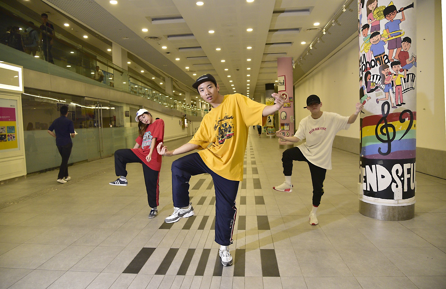 (From left) Dancers Andrea Muhammad, Tyron Cheah and Jason Kang at the Singapore Management University basement.