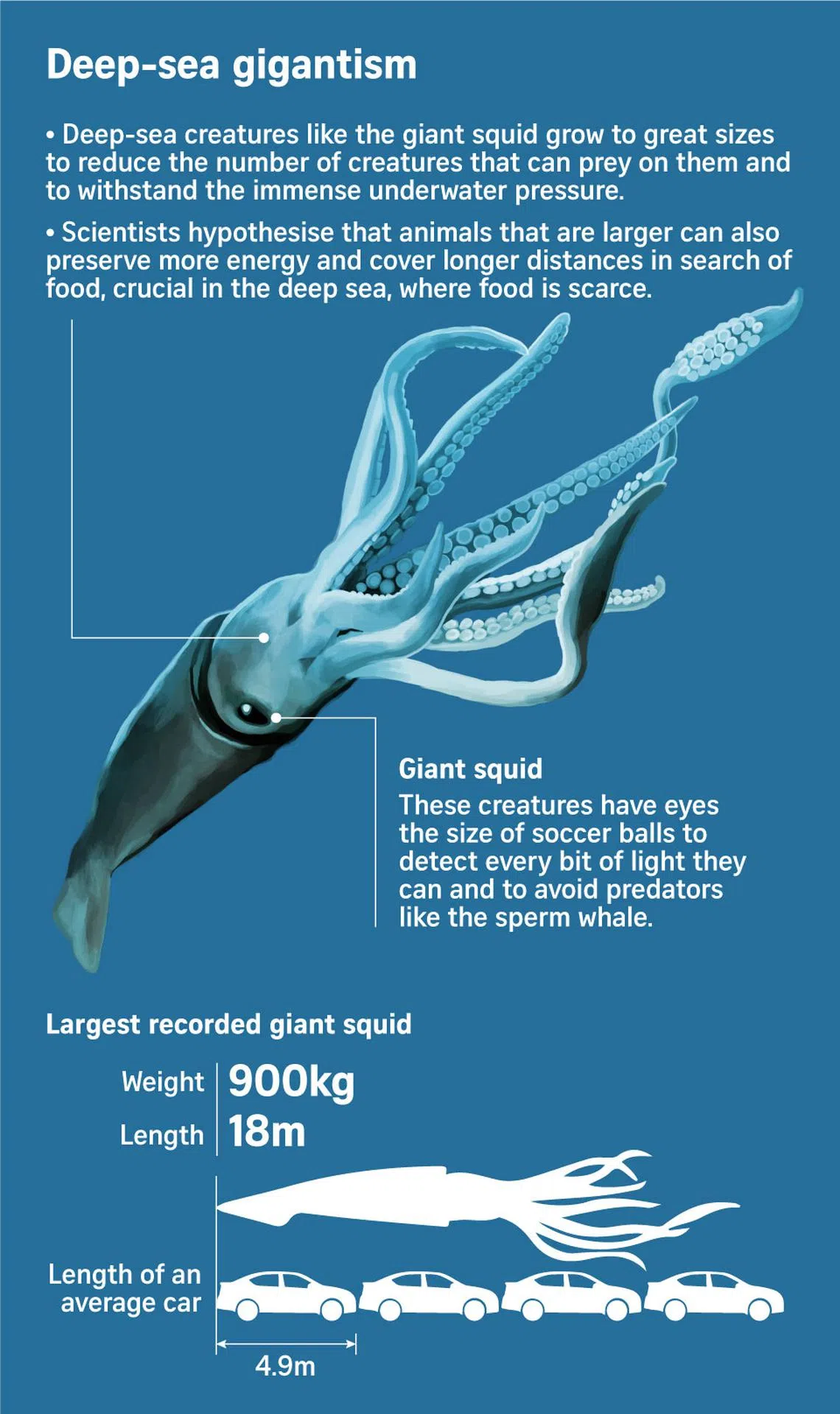 Creatures such as the giant squid grow to enormous sizes to withstand pressure that can crush a submarine.