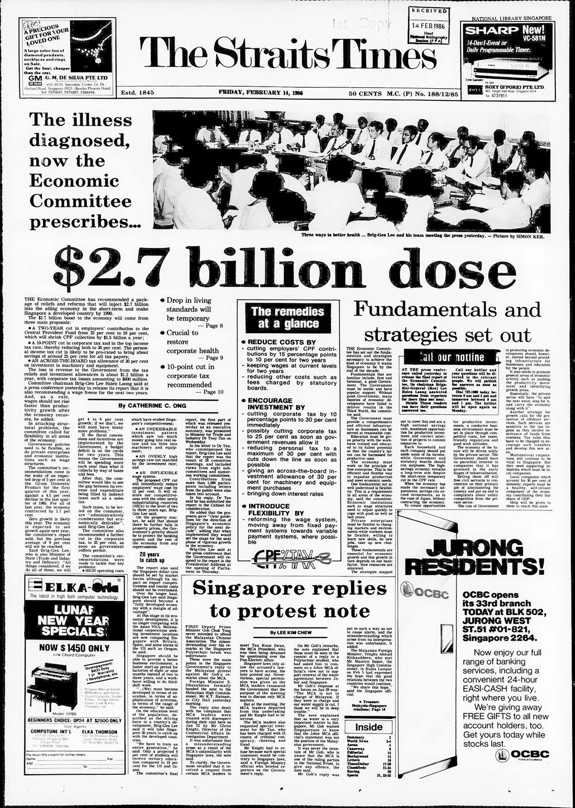 On Feb 14, 1986, ST reported on the Economic Committee recommending a package of reliefs and reforms to boost Singapore’s economy.