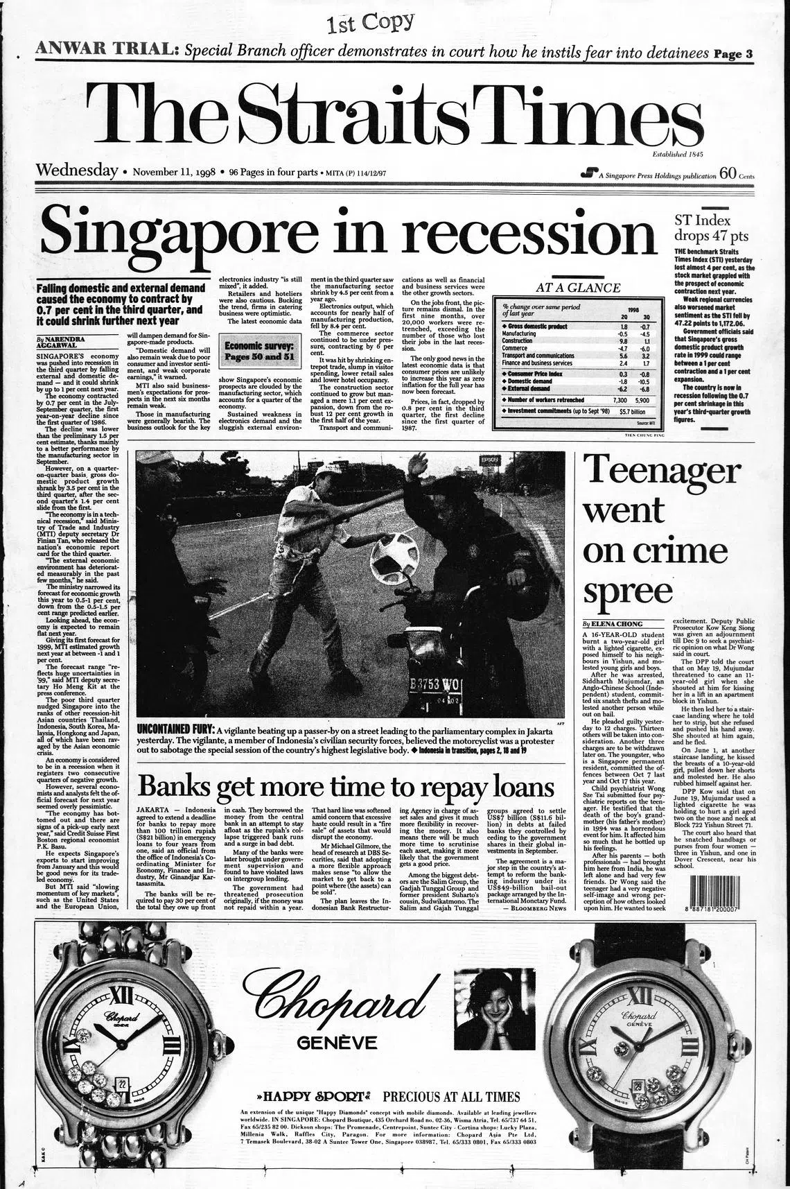 “Singapore in recession”, read the front-page headline on Nov 11, 1998.