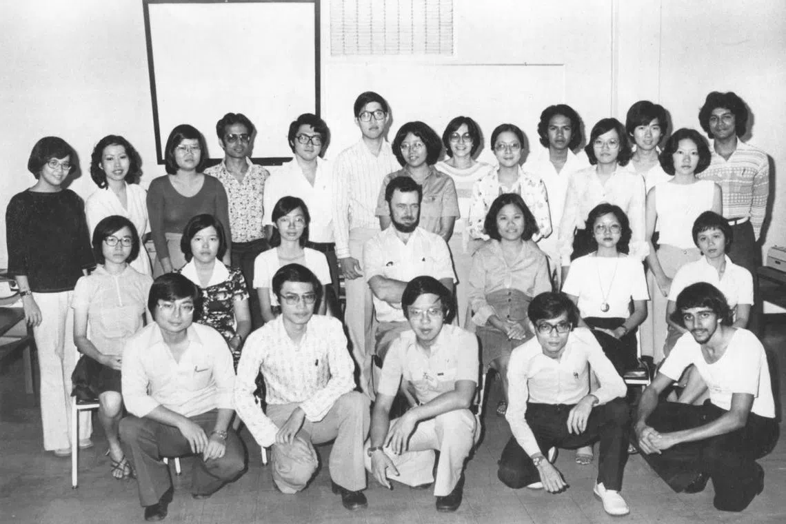 Mr Francis Chin (centre in front row) with his basic reporting and sub-editing course mates in 1977.