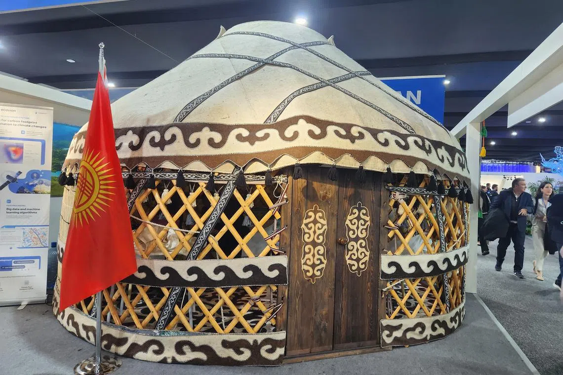China’s pavilion has rows of chairs made of weight-bearing cardboard. The Kyrgyzstan pavilion’s centrepiece is a yurt – a traditional central Asian tent made of felt and textiles. The cosy tent has been a conducive place for small meetings and interviews.