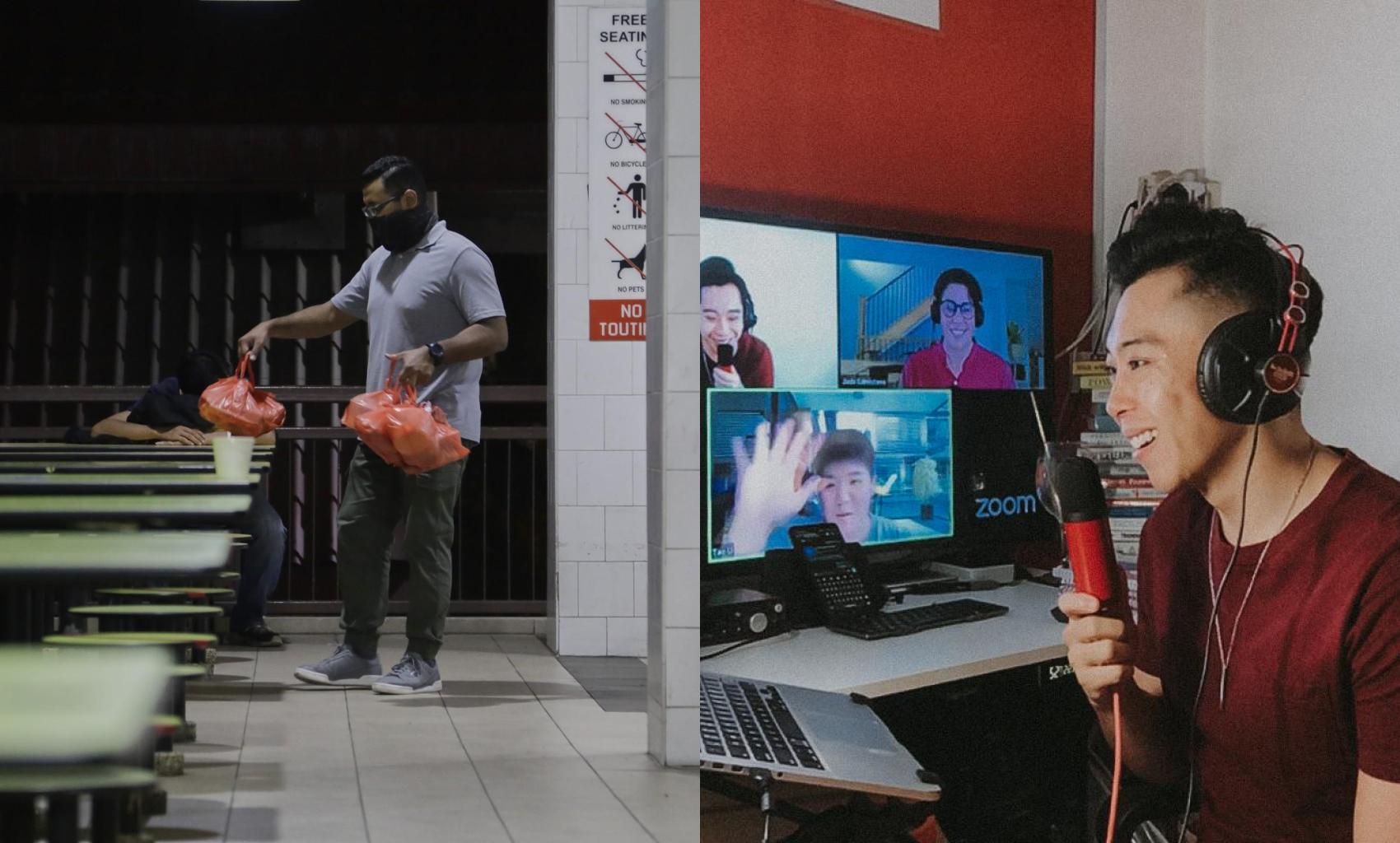 Full-time polytechnic student Ruzaini Syazwan spent his nights delivering food to the homeless during Ramadan, while freelance emcee Elson Leong conducted online talk shows and workout programmes to bolster his income amid the pandemic. PHOTOS: RUZAINI SYAZWAN, ELSON LEONG