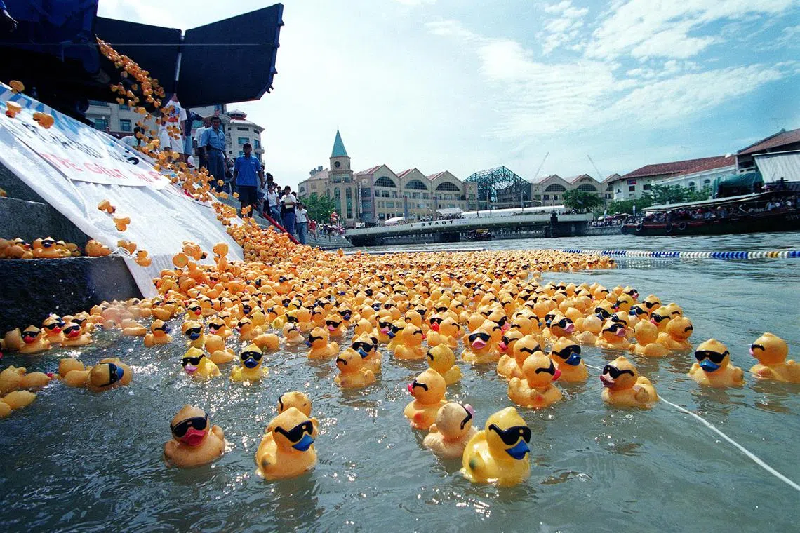 The Straits Times’ first Million Dollar Duck Race, held at the Singapore River on Nov 12, 2000, raised more than $1 million for charity.