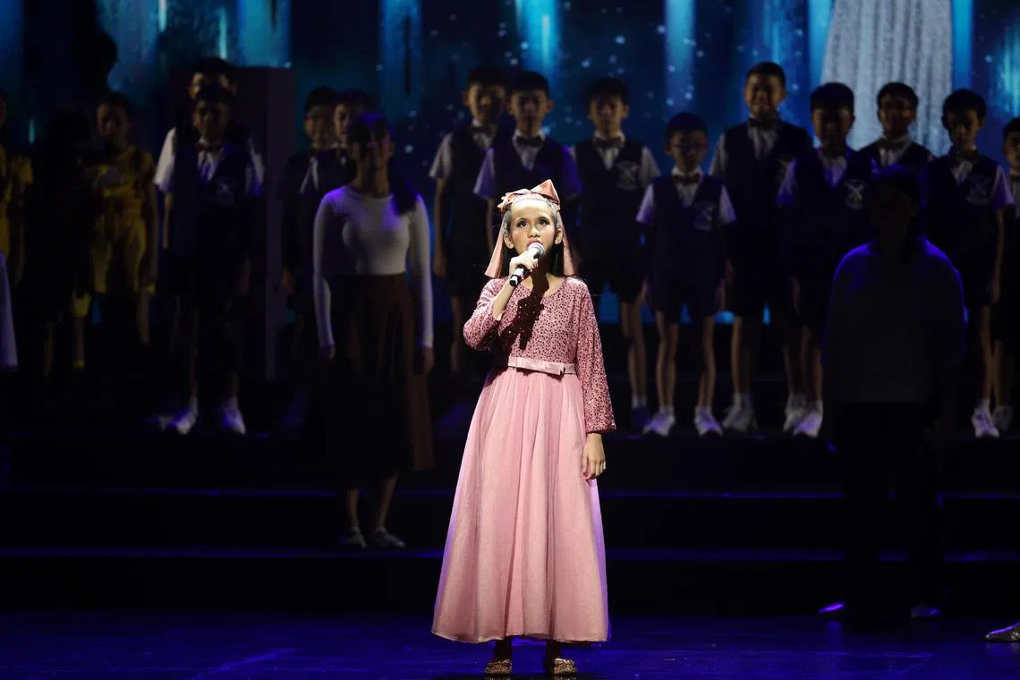 Visually impaired singer Nur Anisah Daaniys Sufian, 12, at ChildAid 2024. Since 2005, the event has raised $33 million for The Straits Times School Pocket Money Fund and The Business Times Budding Artists Fund.