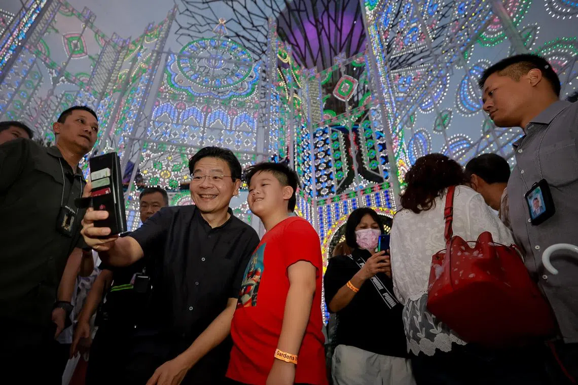 DPM Lawrence Wong with visitors at the launch of Gardens by the Bay’s Christmas celebrations on Dec 2.