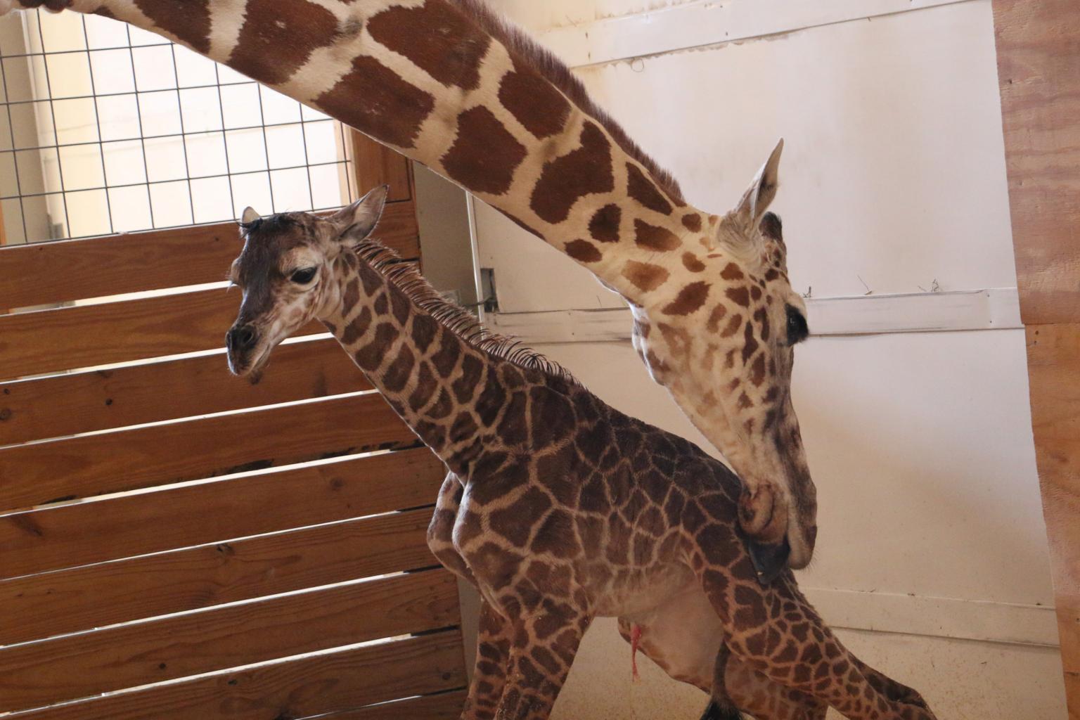 A live stream had been set up on Feb 10 so that the world could look on as the 15-year-old reticulated giraffe awaited the arrival of her fourth calf at the Animal Adventure Park in Harpusville, New York.