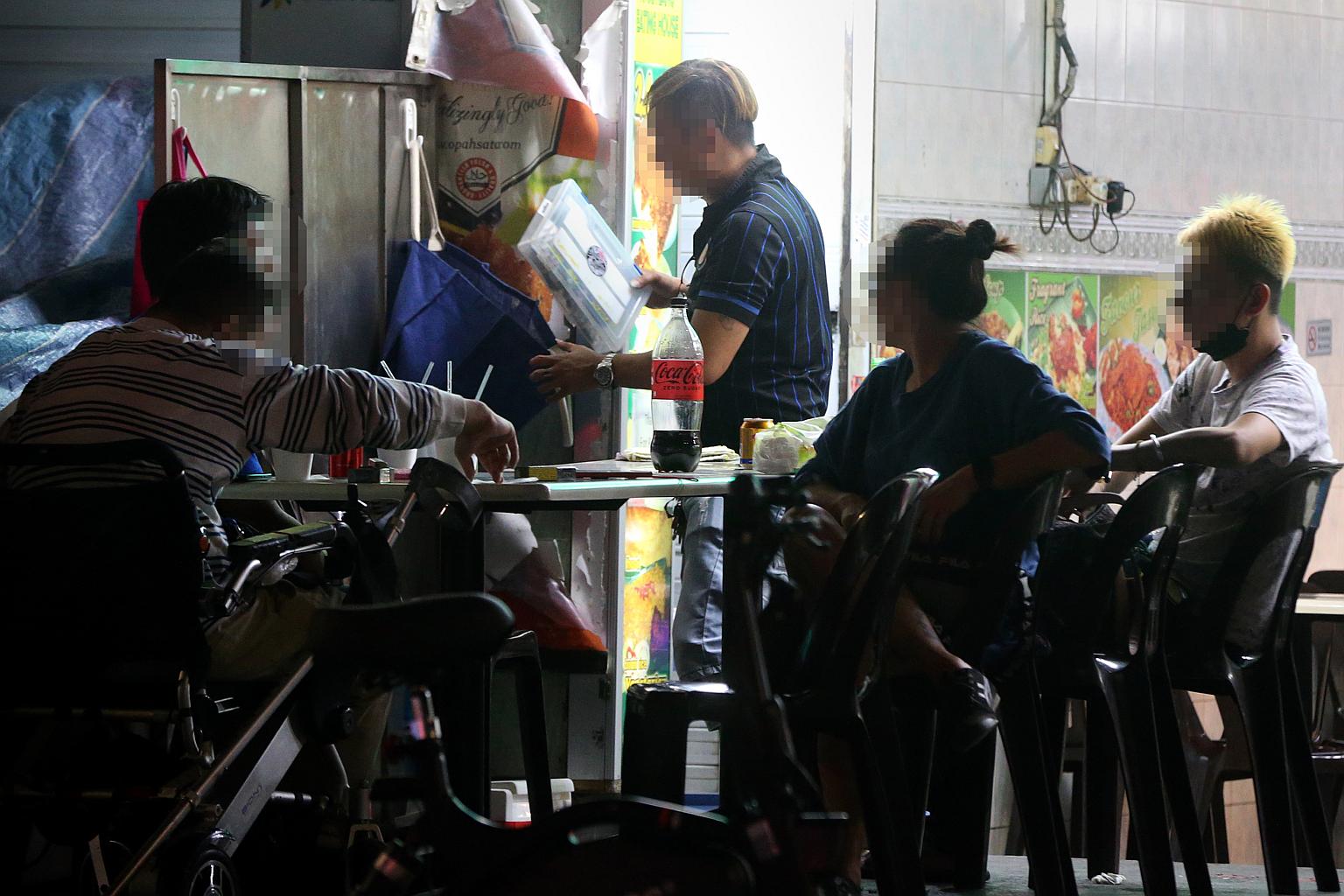 Peddlers specialising in prescription pills and cough syrup operate their nightly business at an eatery in Geylang.