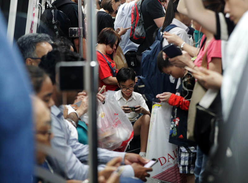 Commuters using their phones on an MRT train. News about the data management review came after several recent cases of data mismanagement and breaches.