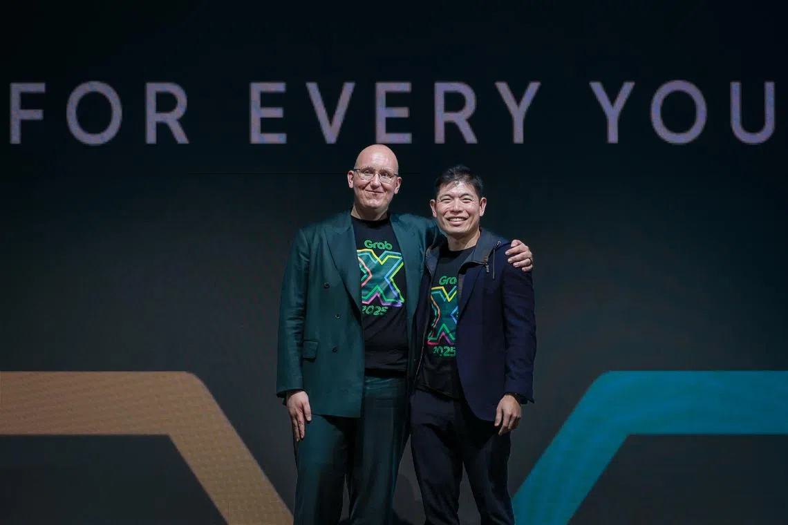 Grab Group CEO Anthony Tan (right) and Grab Chief Product Officer Phillip Kandal at the GrabX event held at JW Marriott Hotel Singapore South Beach on April 8.