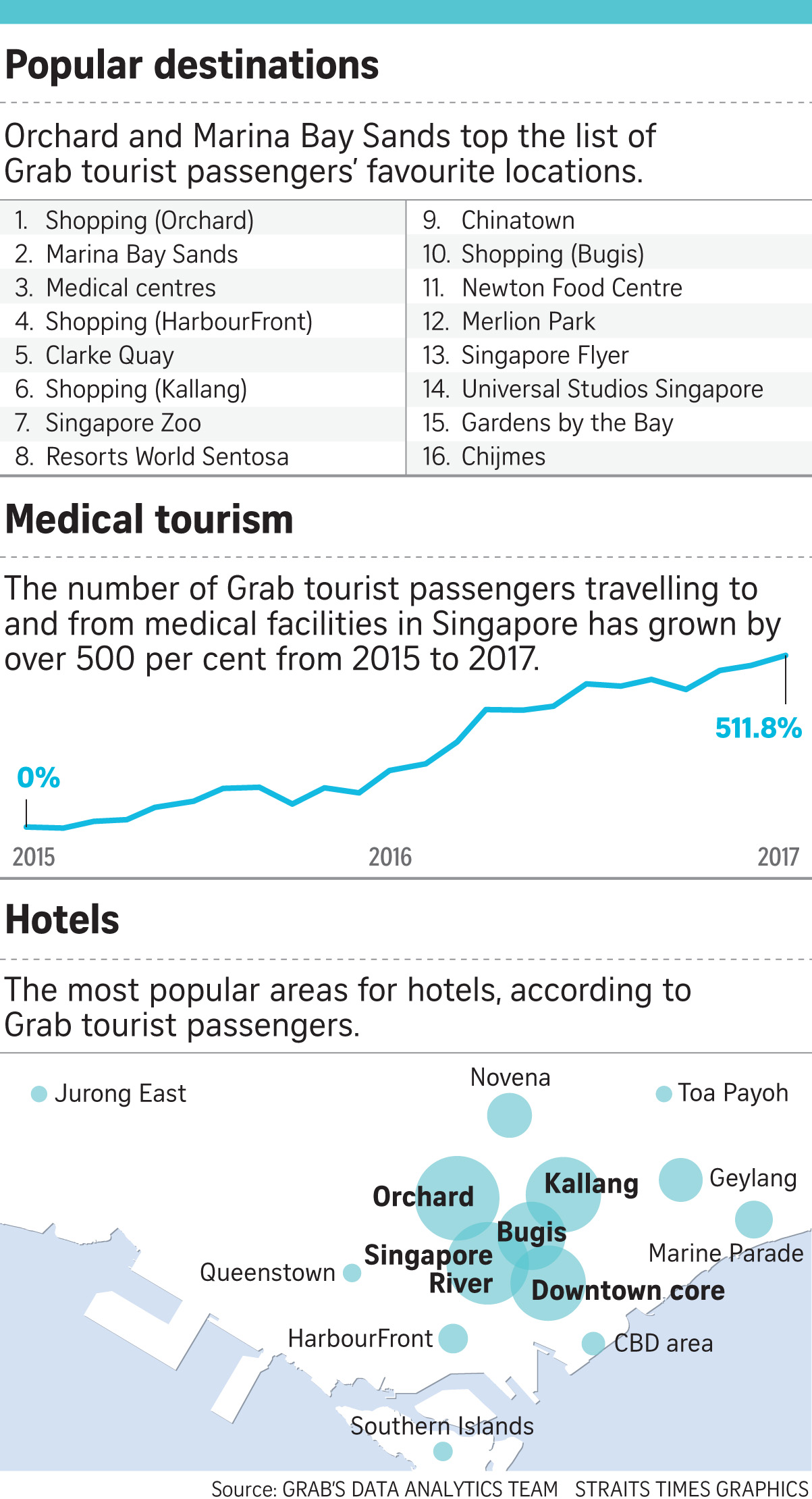 An analysis by Grab of its passengers' travel patterns showed that medical facilities - both public and private - were the third-most visited location by tourists, based on the number of pick-ups and drop-offs the firm charted for its tourist passengers.