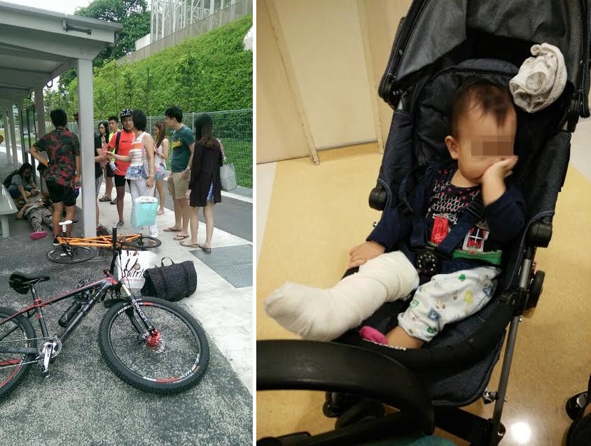 While the grandparents were grateful that the toddler, who had just learned how to walk, did not suffer more severe injuries, they were unhappy that the cyclists "did not apologise".