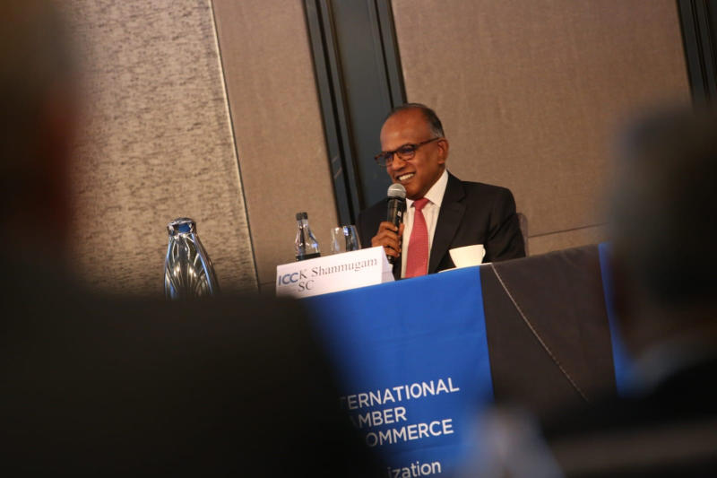 Law and Home Affairs Minister K. Shanmugam speaking at the ICC Asia Conference on International Arbitration on June 26, 2019.