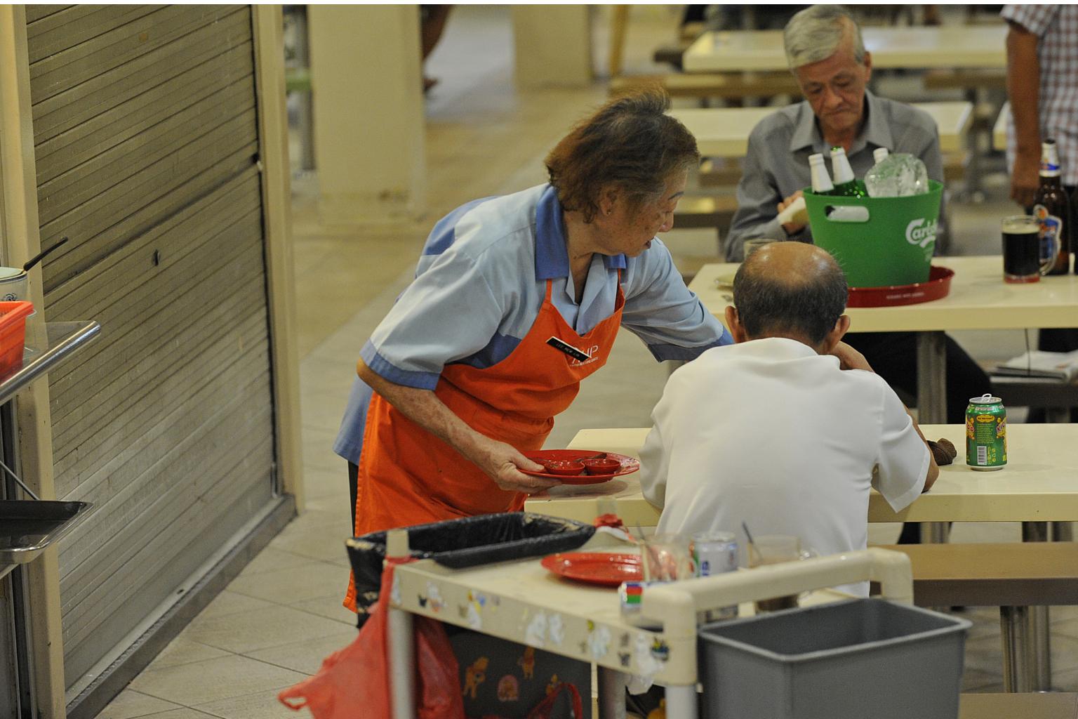 An elderly cleaner at Berseh Food Centre in Jalan Besar.