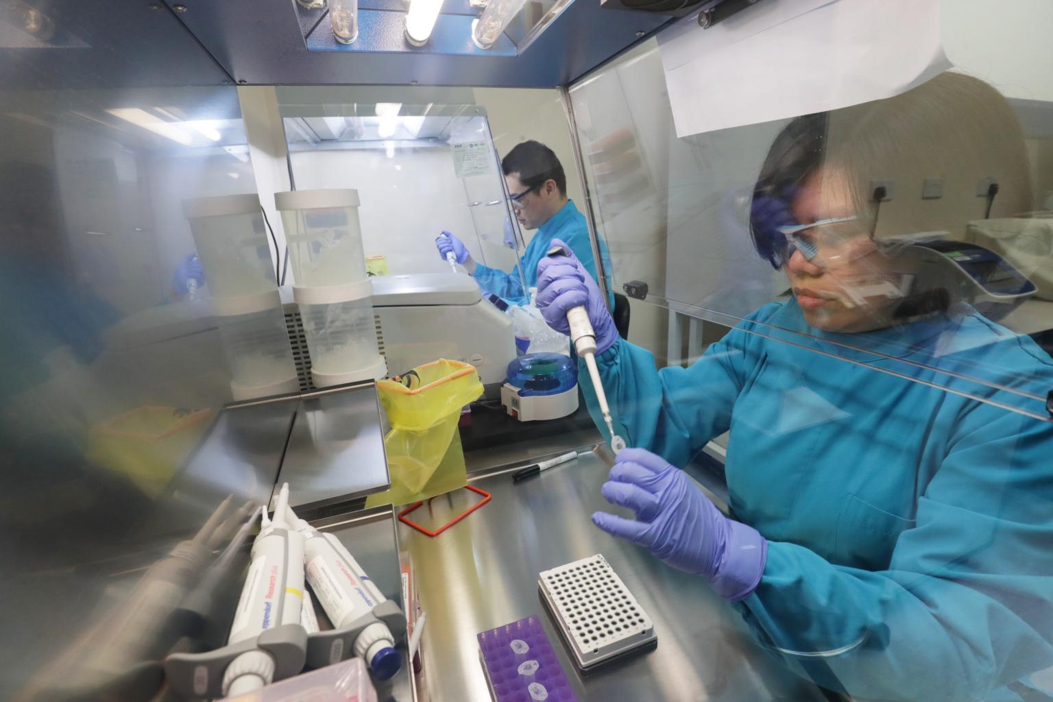 In a photo taken on Feb 10, 2020, laboratory technicians at the Agency for Science, Technology and Research’s Diagnostics Development Hub work on a diagnostic kit to test whether patients have the coronavirus.