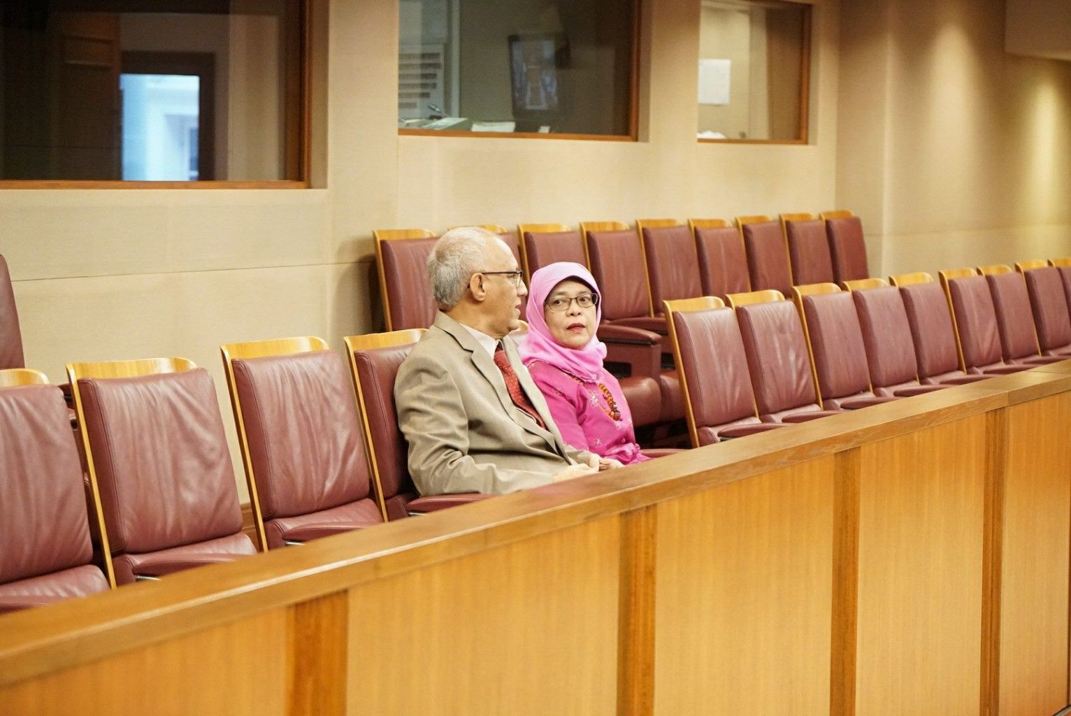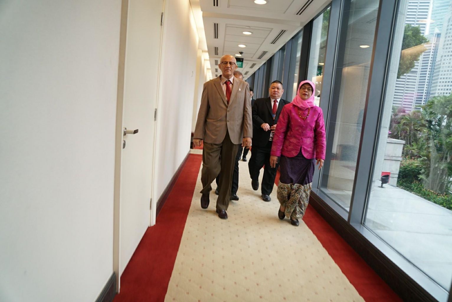 Madam Halimah Yacob and her husband, Mr Mohamed Abdullah Alhabshee, in Parliament House on Monday (Sept 11).