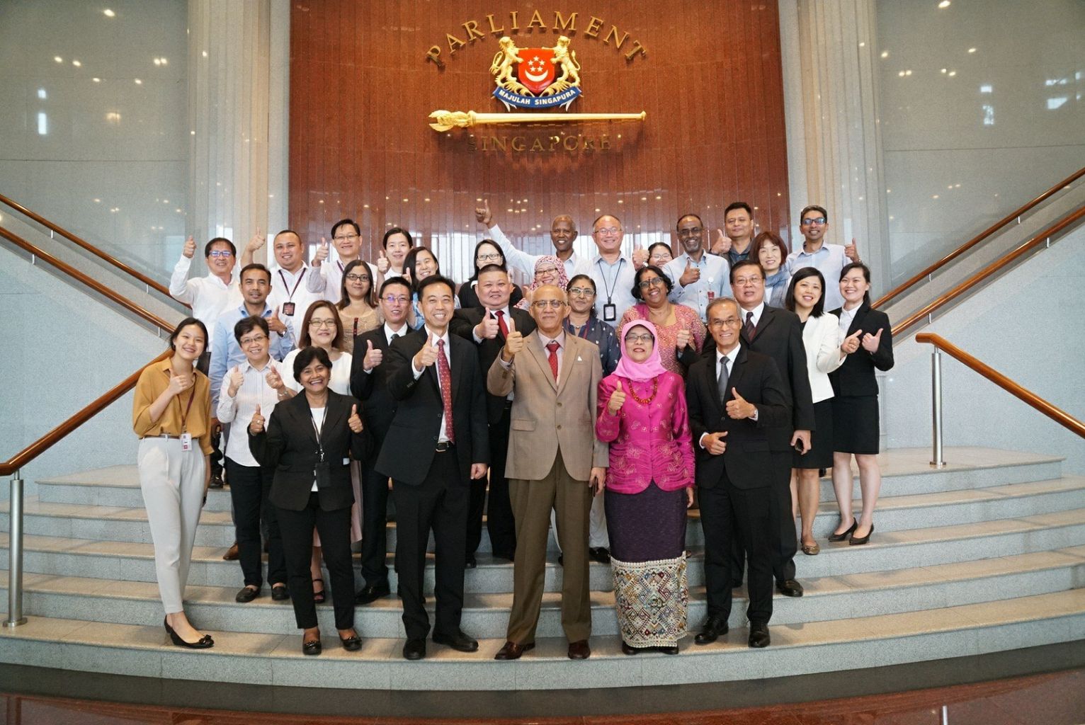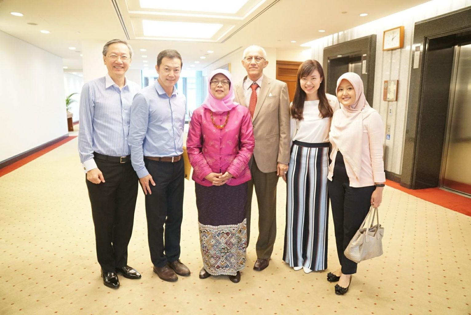 Madam Halimah poses for a group photograph on the stairs at the Parliament House during her visit on Sept 11.