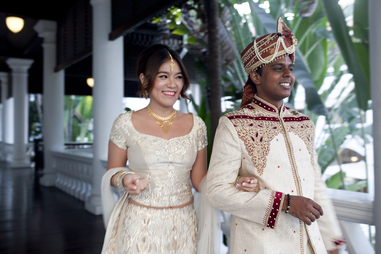 Mr Abraham Christopher, a senior manager at a communications firm, and Ms Jacqueline Lui, a communications specialist, at their wedding.