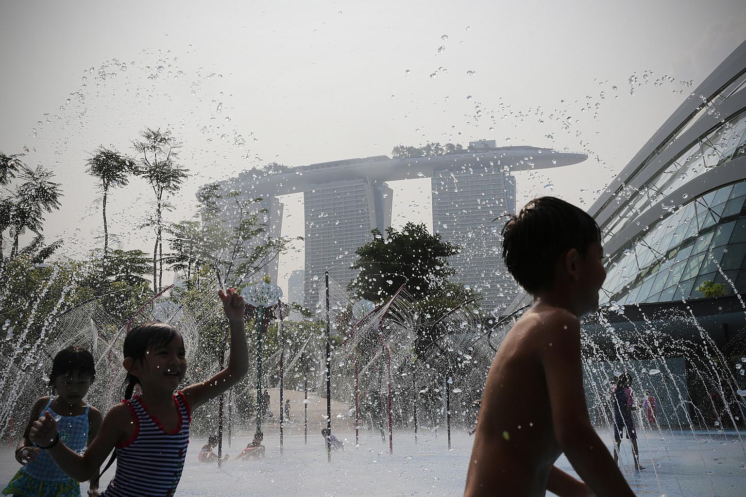 Children play at the water play area of Gardens by the Bay on Oct 9, 2015.