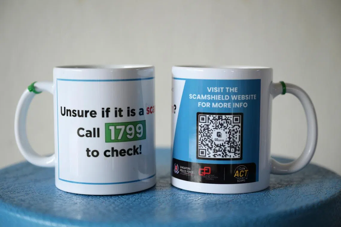 Mr Low, 57, who is also the chairman of the Boon Lay Hawkers’ Association, said the hawkers find the new anti-scam cups informative, as the helpline is easy to remember. Customers also said the cups remind them of the helpline while they are eating and drinking.