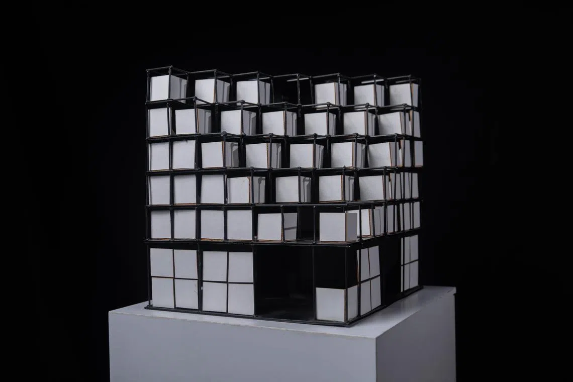 Architectural assistant Kenneth Chiang holding a self-designed stage model inspired by Singapore’s 60th birthday.