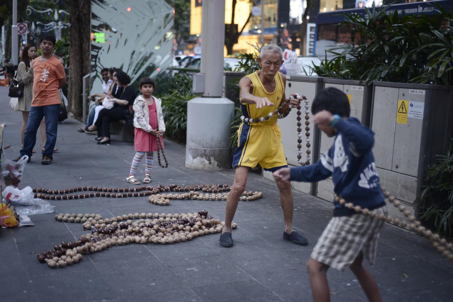 Pre-Covid-19 pandemic, he would be spotted rain or shine outside Takashimaya Shopping Centre, smiling widely at passers-by and tourists, who would often stop to watch. He would also encourage them to try their hand at a smaller chain of beads.