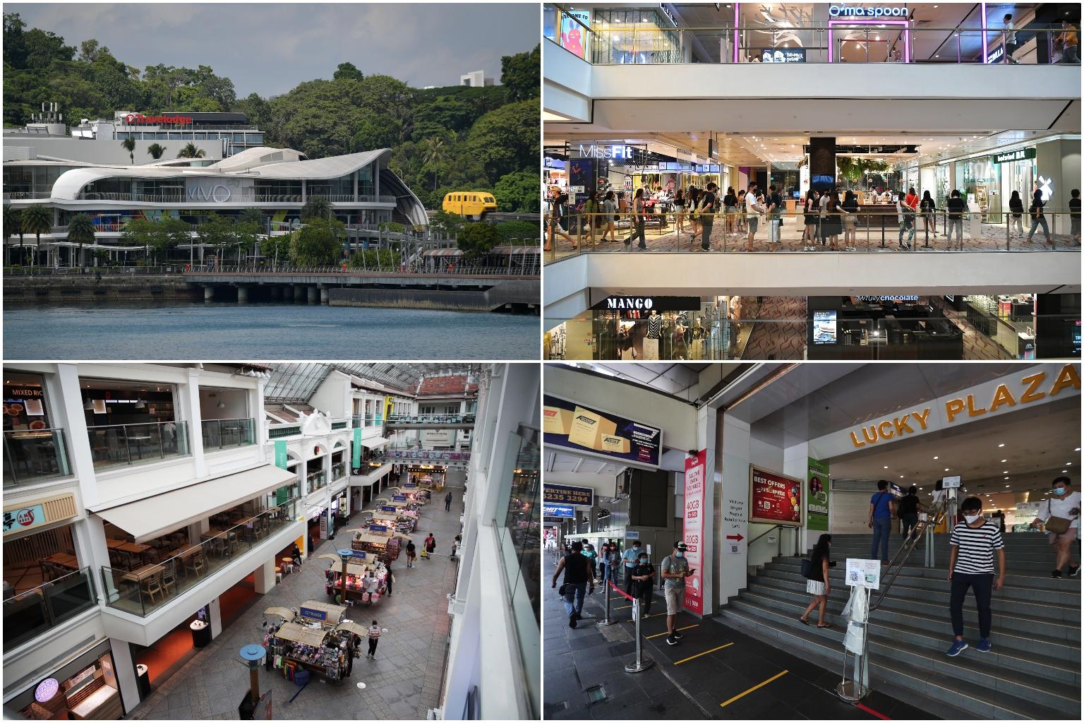 (From top, left) VivoCity, 313@somerset, Lucky Plaza and Bugis Junction.
