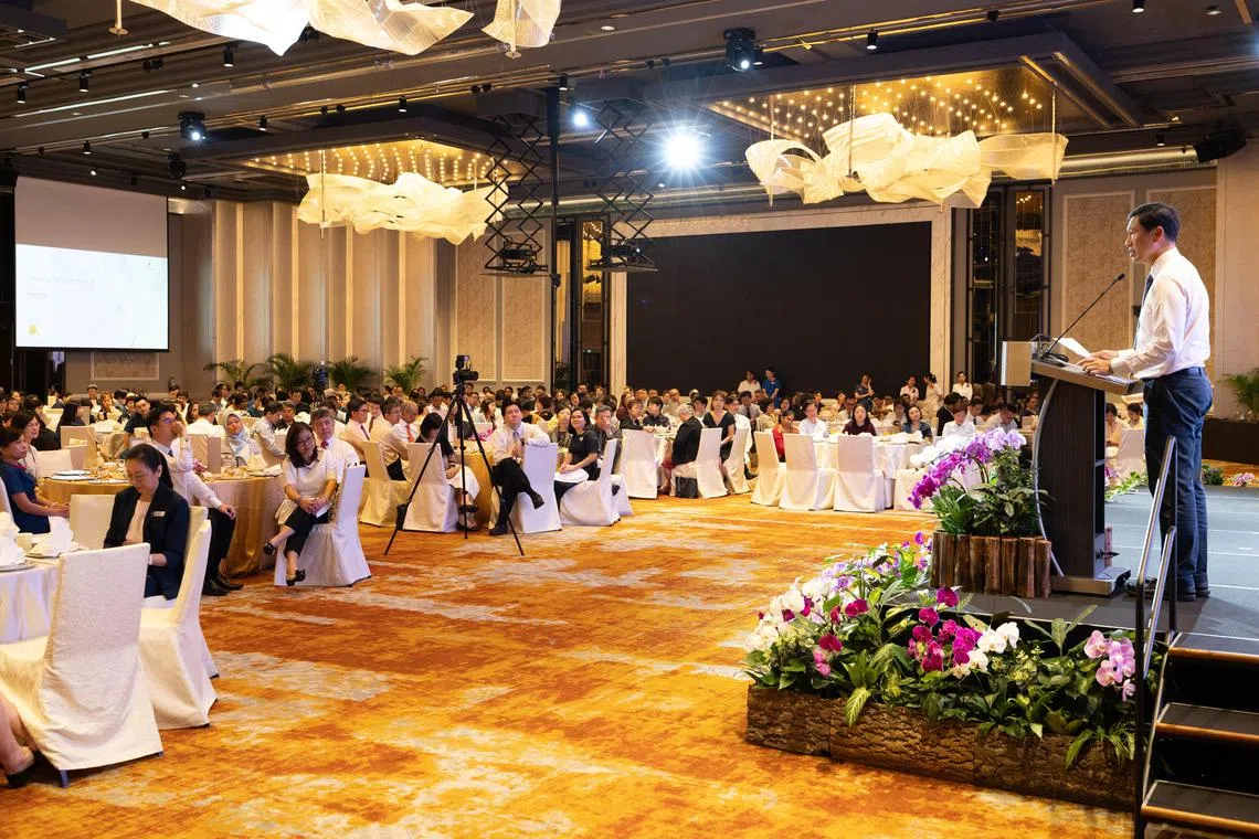 Health Minister Ong Ye Kung speaking at the Nurses’ Merit Award ceremony at the Orchard Hotel on July 19, 2023.