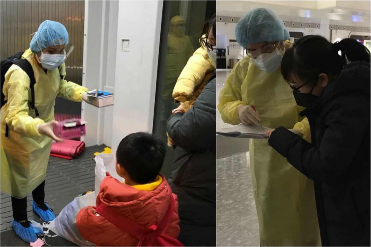 Ministry of Foreign Affairs staff handed out masks and assist returning Singaporeans and their family members before they board the flight home at Wuhan Tianhe International Airport.