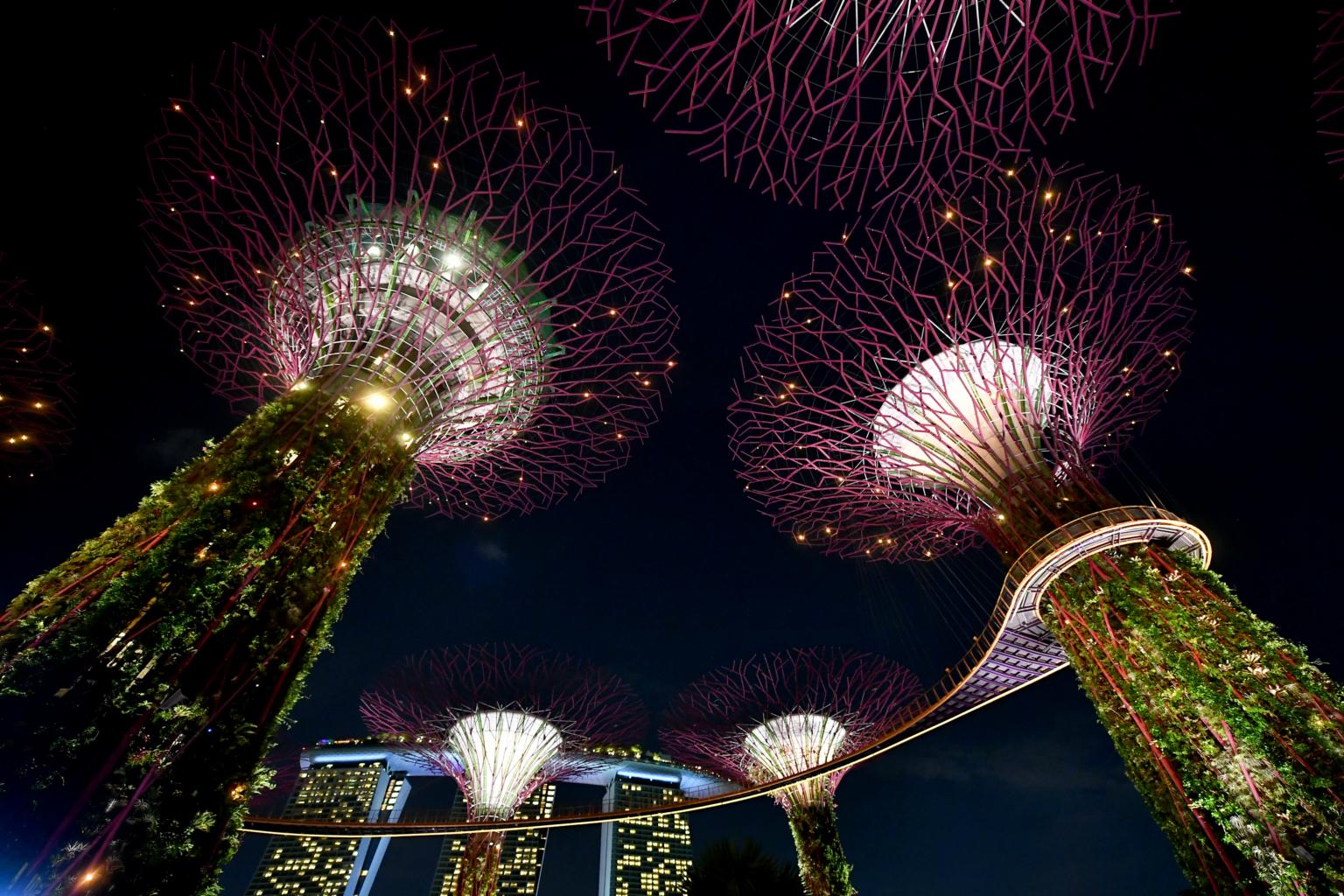 Supertrees at Gardens by the Bay is one of 15 locations which will be lit up in orange, blue or a mixture of both, on Feb 4, 2021.