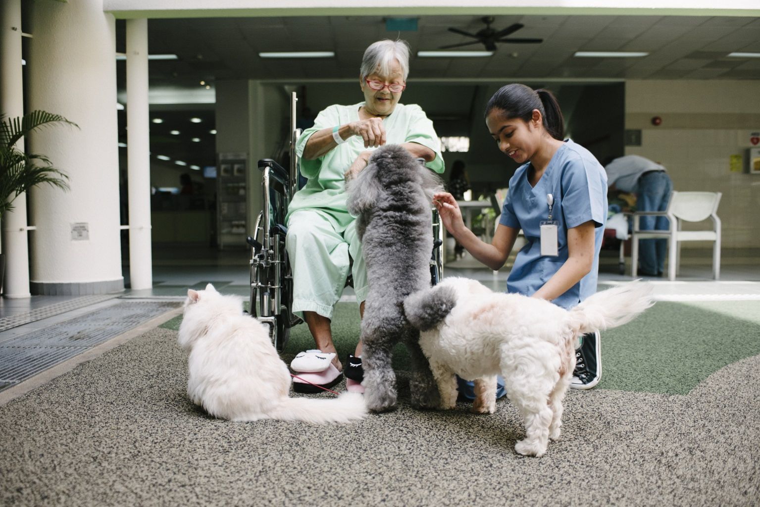 Since the animal-assisted therapy sessions started in early 2016, patients have been happier and more engaged, she added. They have also improved physically, such as by being able to stand for longer periods and balance better.