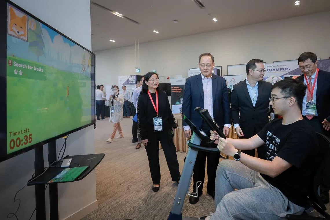 Manpower Minister Tan See Leng (second from left) touring the exhibition booths at the International Conference on AI in Medicine on Aug 5.