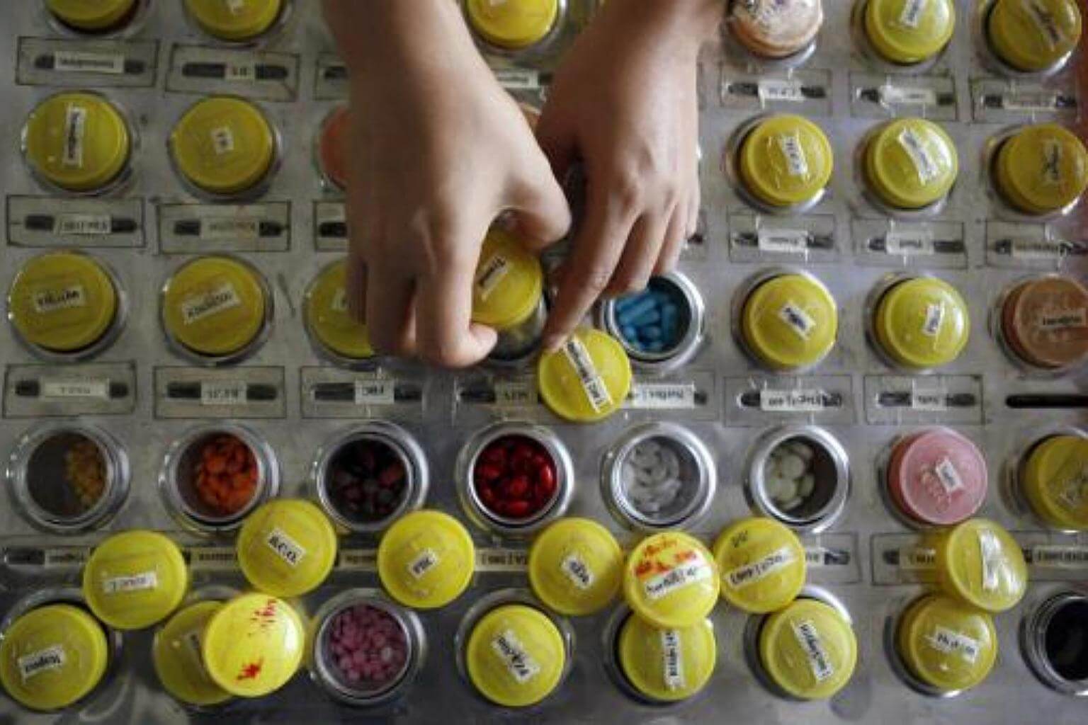 A nurse preparing doses of HIV-AIDS drugs for patients.
