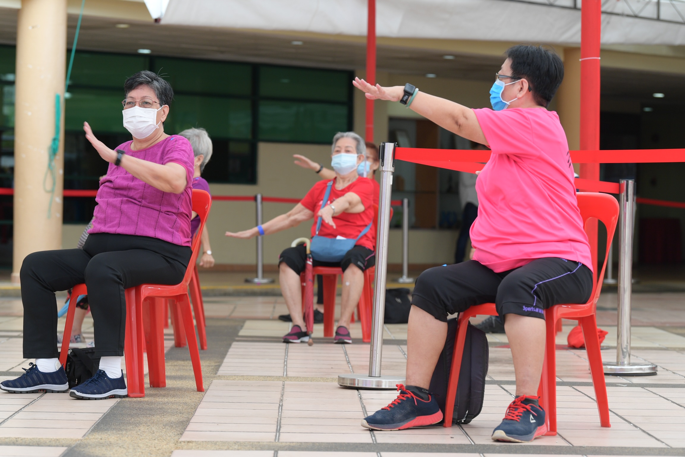 Mass exercise at Yio Chu Kang CC where Project Dementia-Friendly Yio Chu Kang 2025 was unveiled by PM Lee Hsien Loong on Dec 4, 2021.