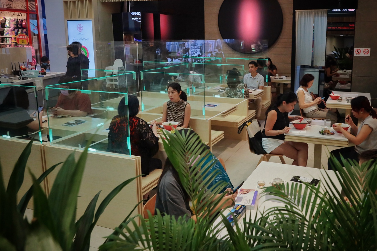Diners in a restaurant at 313@somerset mall ahead of Singapore's phase two (heightened alert) in July.