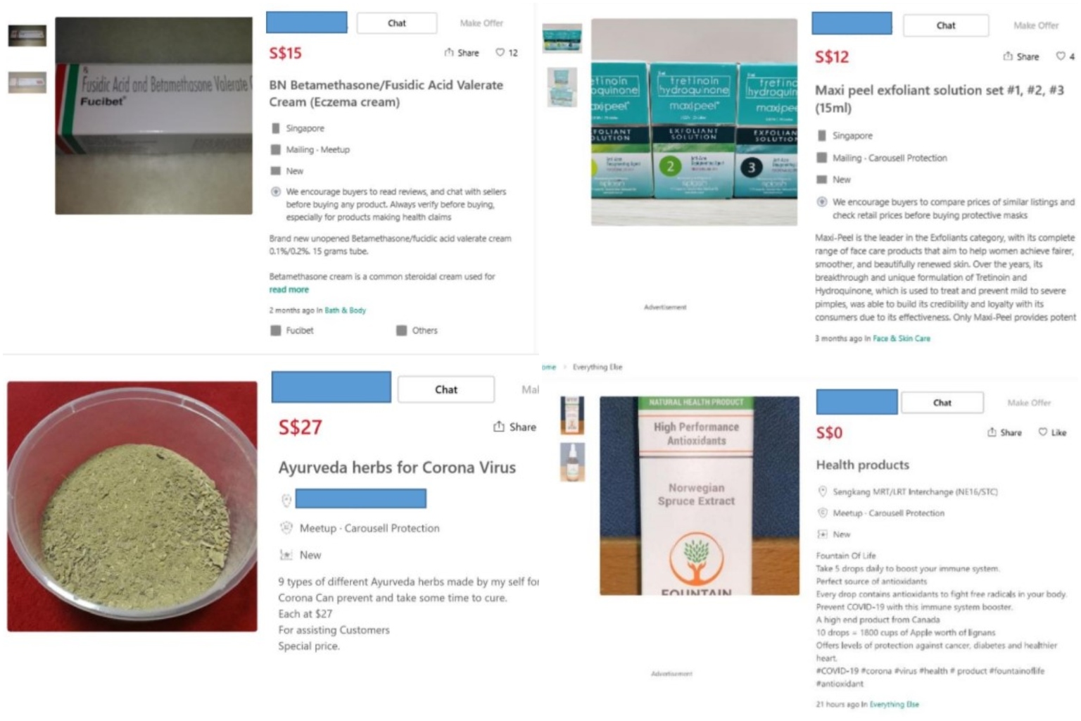 The investigations also found that some sellers were selling leftover or unused prescribed health products such as steroid creams, antibiotic creams and painkillers.