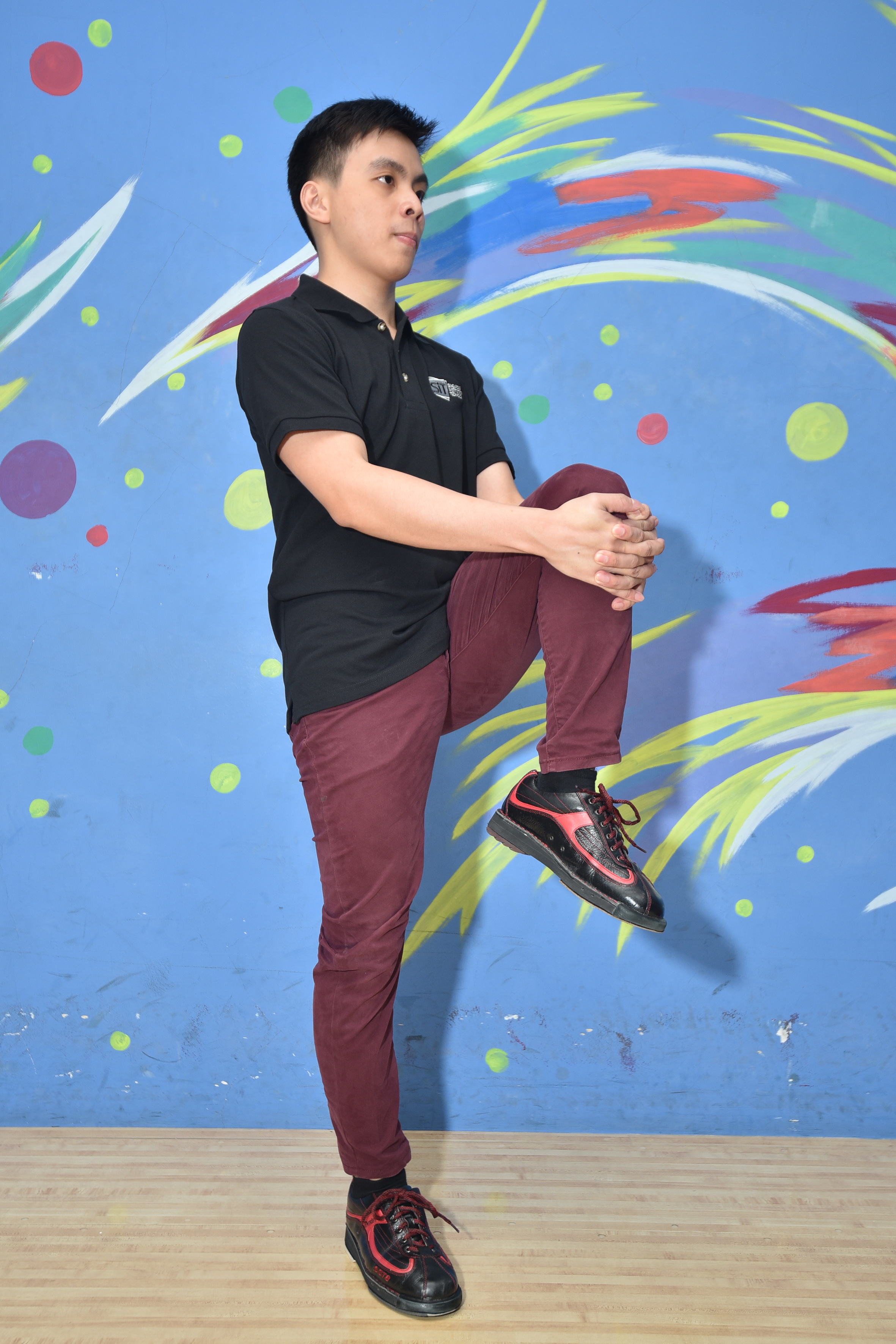 Competitive bowler Tay Ngiap Siang, 23, demonstrates stretching exercises you can do to limber up before bowling.