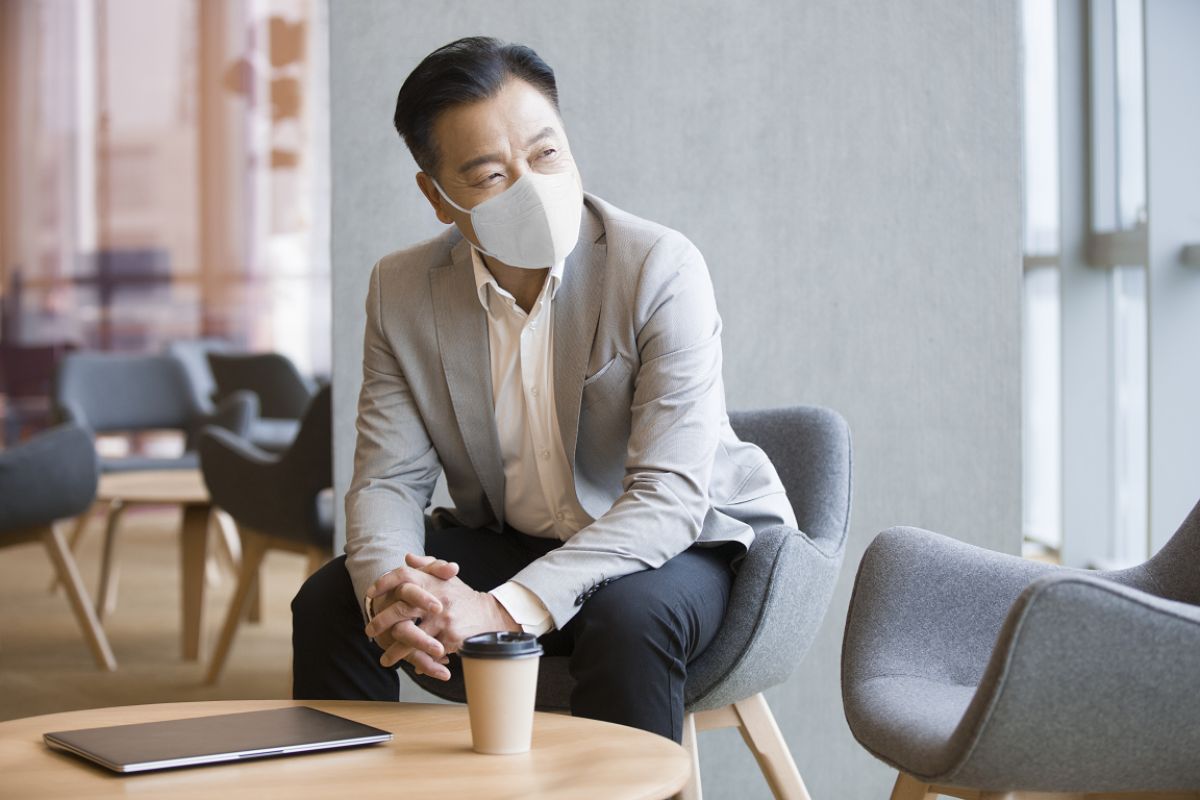 Once the respirator is on the face, with the noseclip moulded to the shape of your nose and the sidebands hooked at the back of your head, cover the respirator with both hands and breathe in quickly. Once there is no air leaking in at the sides of your face, you will know that the tight seal has been achieved. With this, you can go about your day with peace of mind.