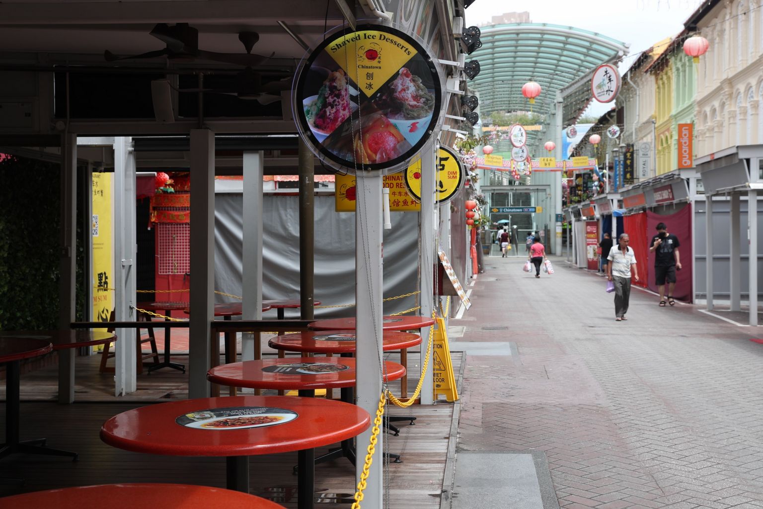 Businesses are closed in Singapore's Pagoda Street near noon on April 7, 2020.