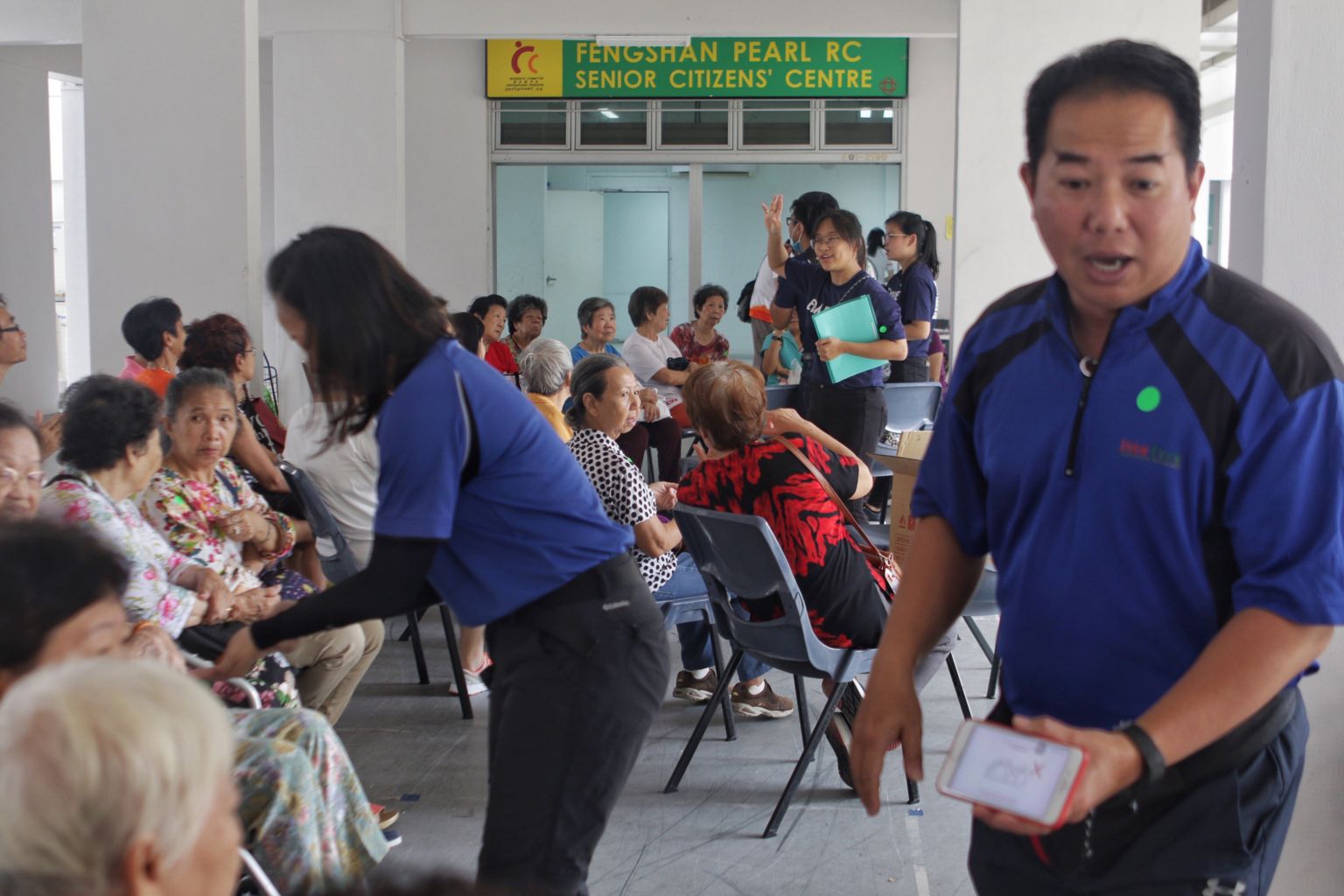 Among the first to receive the masks and sanitisers was a group of around 70 elderly citizens in Fengshan. They also listened to a quick presentation on hygiene practices in lieu of their usual morning exercise programme conducted by Bethesda Care Services.