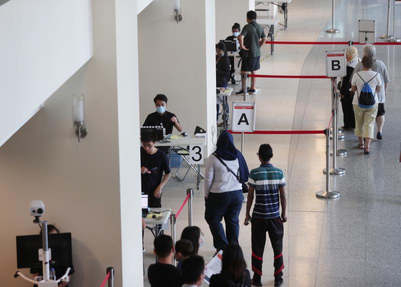 Temperature screening stations at NUH Medical Centre on Feb 24, 2020. Singapore now has 90 coronavirus cases.