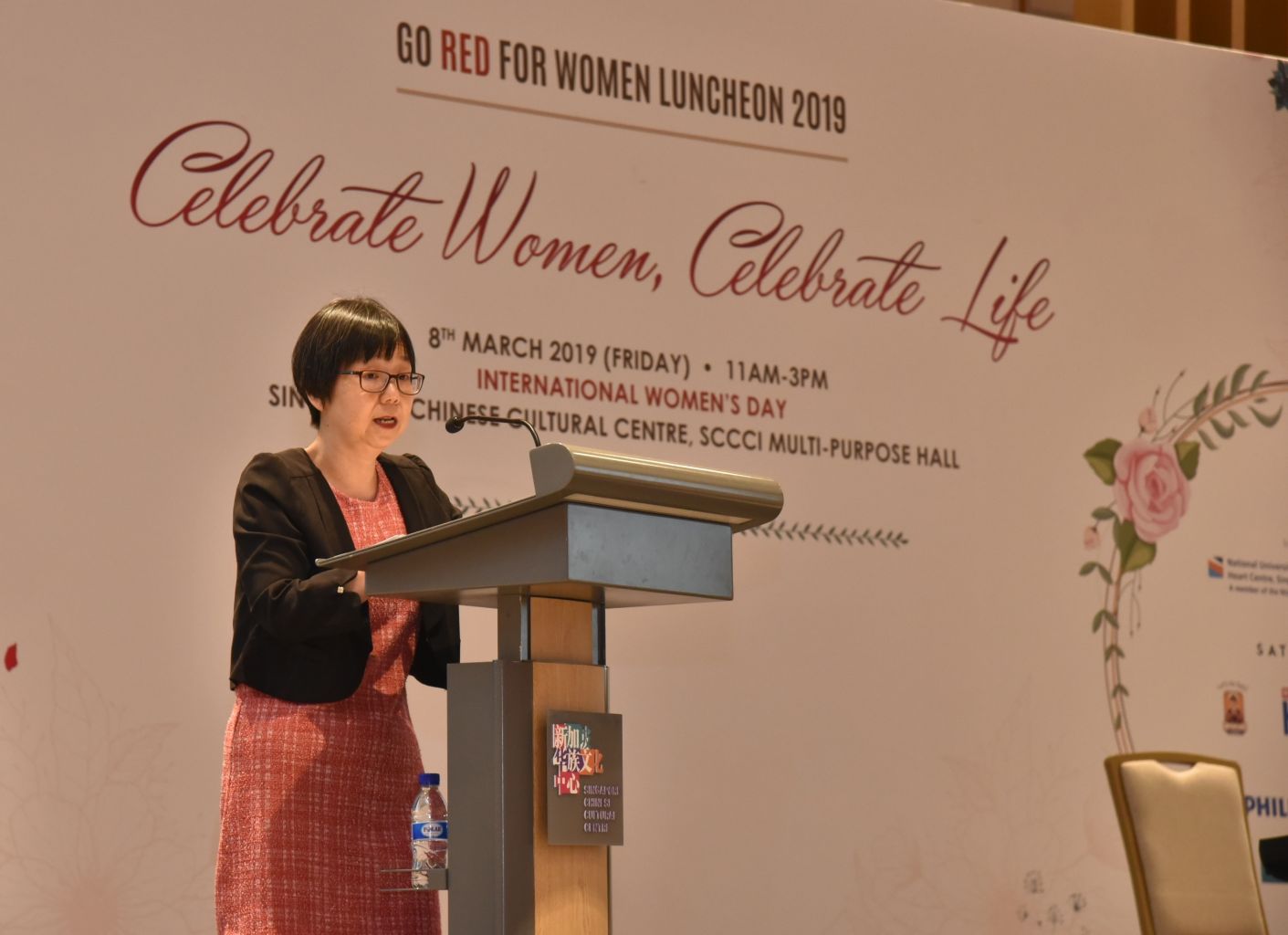 Cardiologist Goh Ping Ping giving her opening address at the Go Red For Women Luncheon on March 8, 2019. She said that "cardiovascular disease has been historically perceived as a man's disease, which is a misconception".