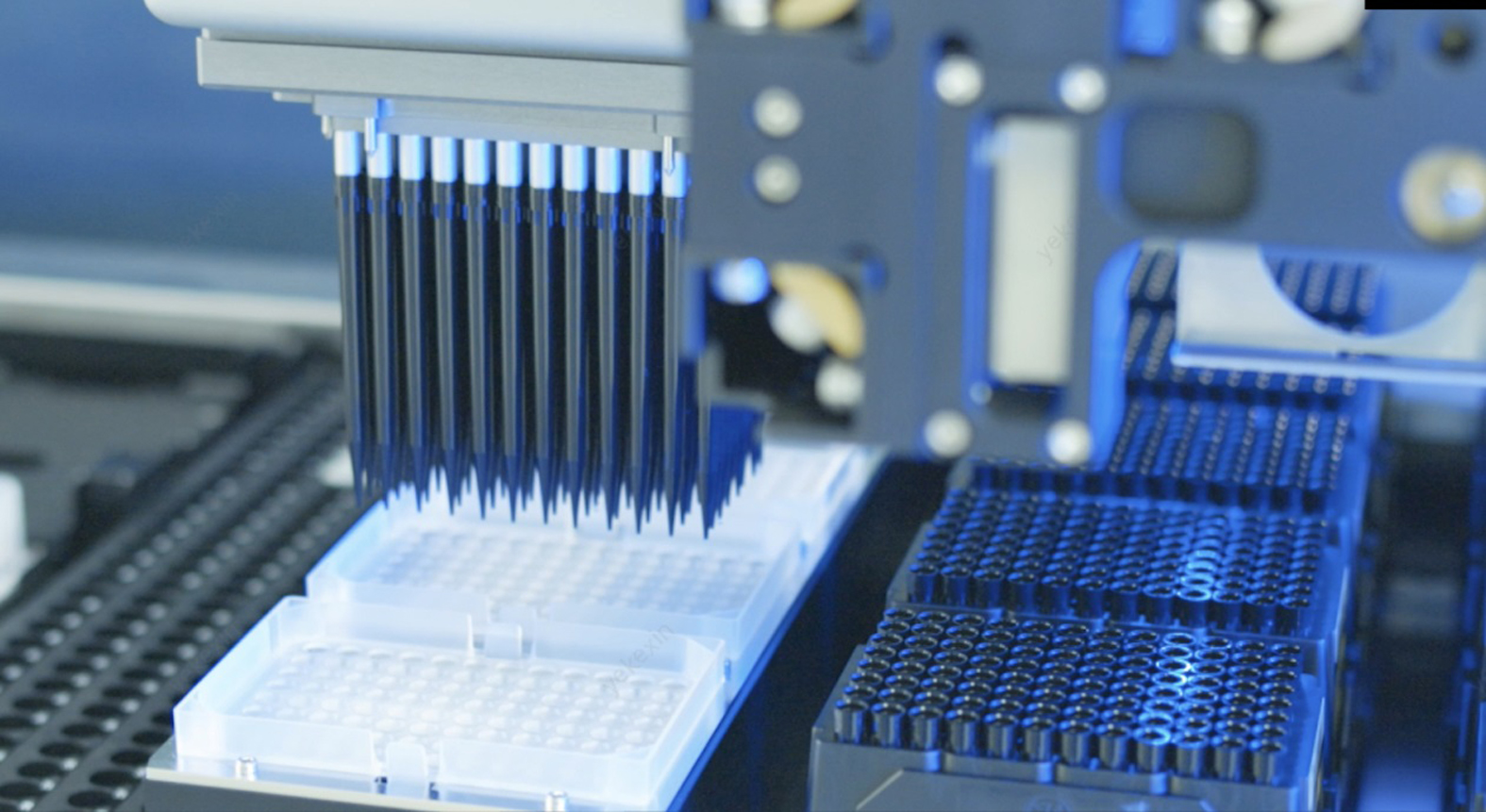 An automated liquid handling system to support high throughput protein production at GenScript's new manufacturing facility.