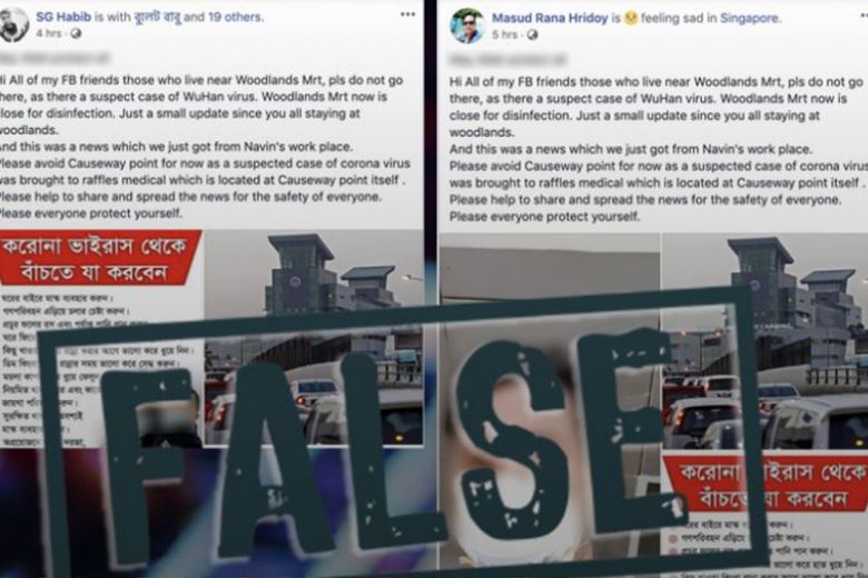 As misinformation swirled online, two posts circulating on Facebook told people to avoid Woodlands MRT station, claiming a suspected case was discovered there.