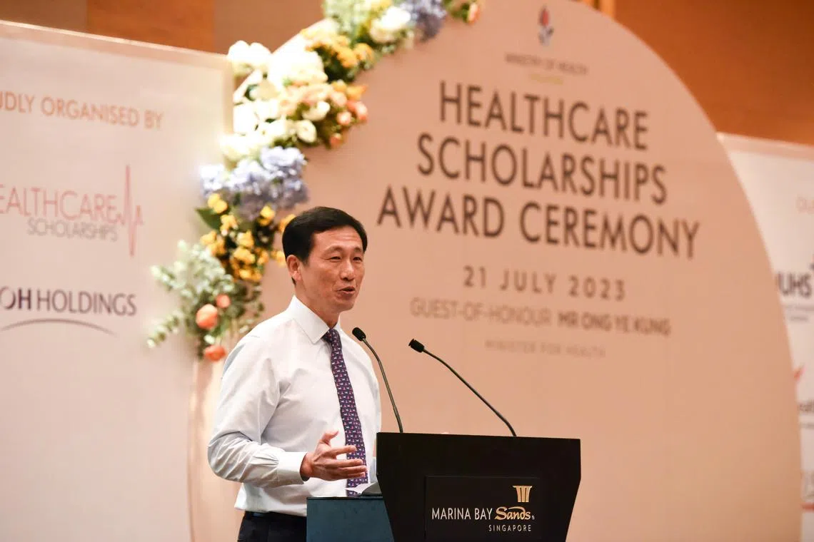 Health Minister Ong Ye Kung giving his opening address at the Healthcare Scholarships Awards Ceremony 2023 on July 21.