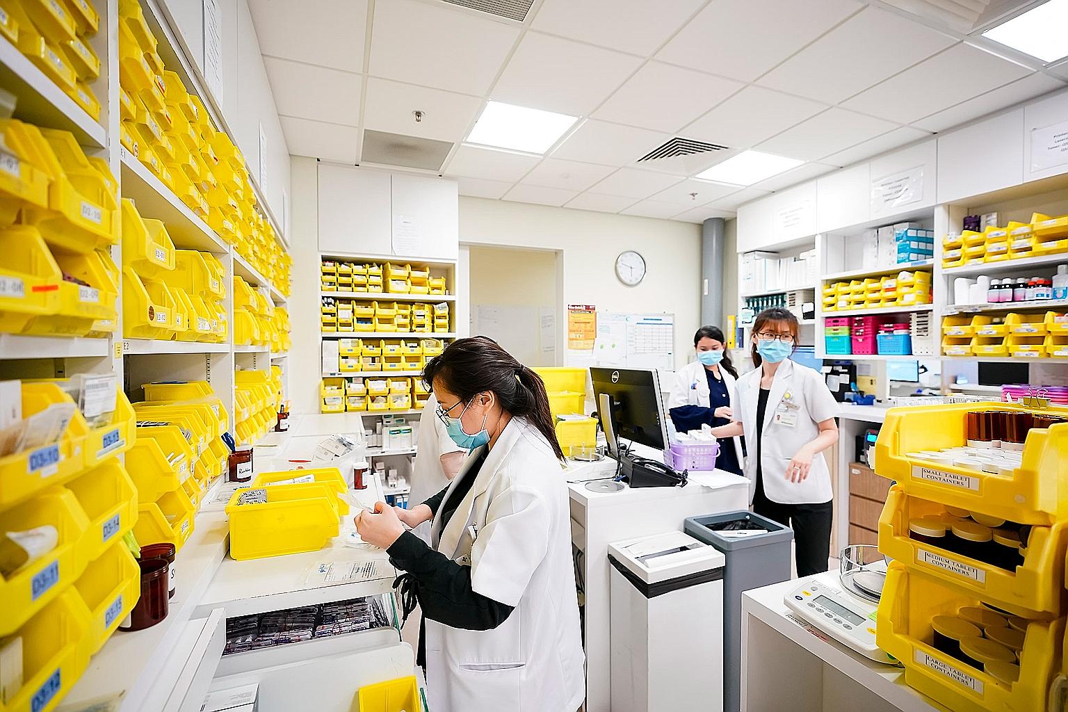 The pharmacy at the National University Cancer Institute, Singapore. The institute saw 67 telemedicine cases last month, up from 26 in March. If medications are needed, they can be sent to the patients' homes.