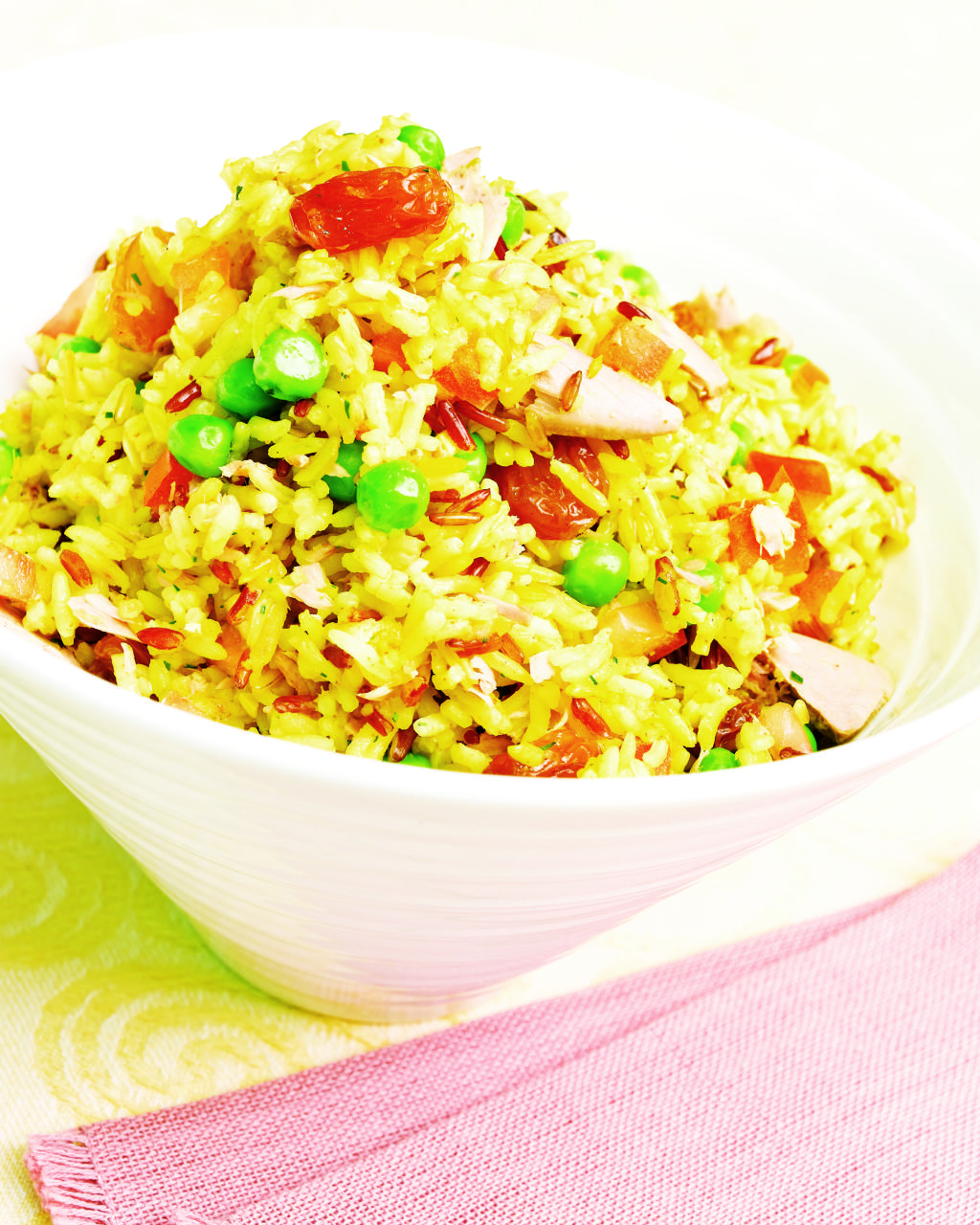 • Fold in the tuna, diced tomatoes and green peas while the rice is hot.