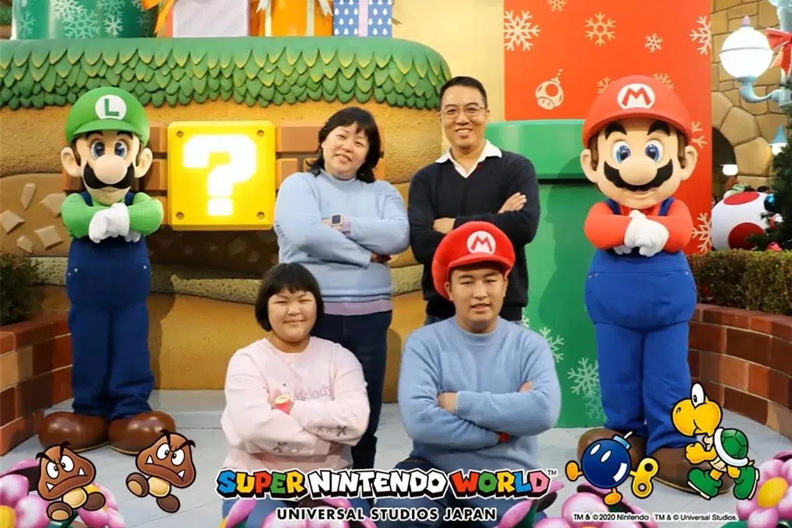 Mr Chiang Kok Keong and his wife Ai Min with their son Wai Jeon and daughter Xiaoqi in a photo taken at Universal Studios Japan.