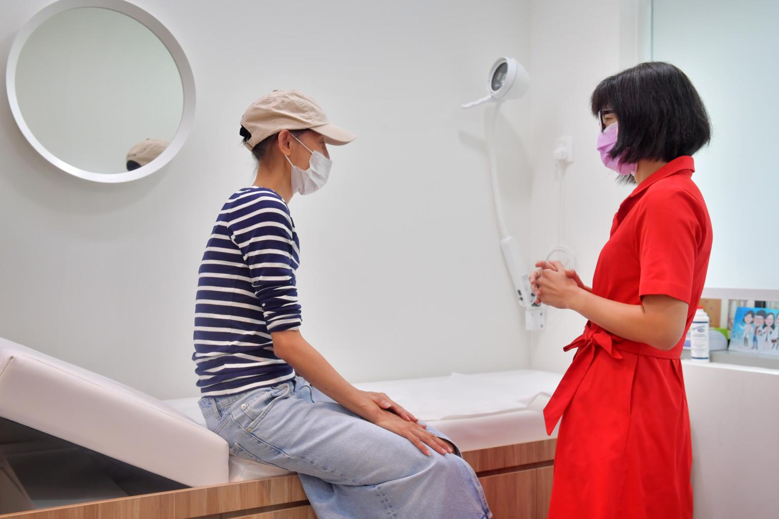 Cancer patient Koh Ee Miang (left) and her oncologist Choo Su Pin.