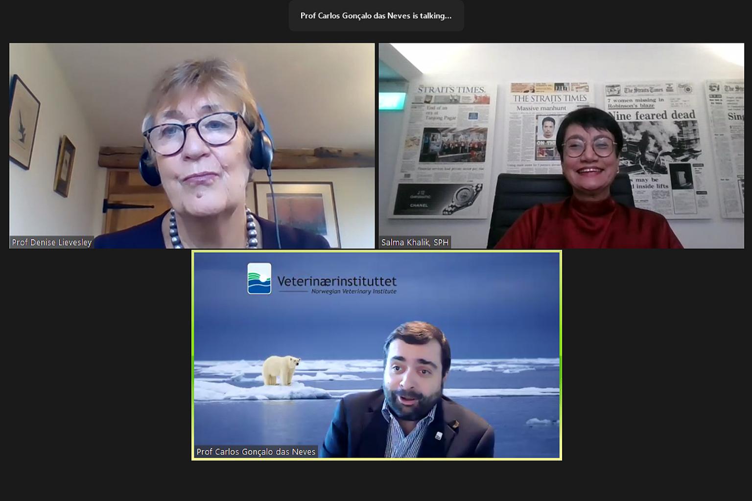 (Clockwise from top left): Former principal and current honorary fellow of Green Templeton College at the University of Oxford, Professor Denise Lievesley, ST senior health correspondent Salma Khalik, and director of research and internationalisation at Norwegian Veterinary Institute, Professor Carlos Gonçalo das Neves, at the virtual Science in the Newsroom Global Summit 2020 on Nov 23, 2020.